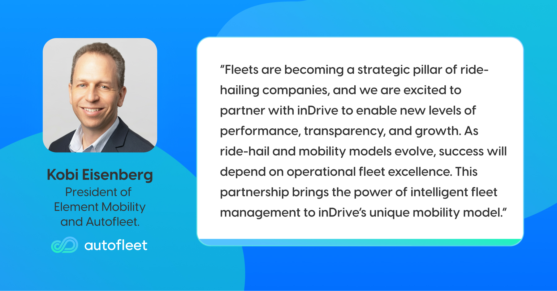 “Fleets are becoming a strategic pillar of ride-hailing companies, and we are excited to partner with inDrive to enable new levels of performance, transparency, and growth”, says Kobi Eisenberg, President of ElementMobility and Autofleet. “As ride-hail and mobility models evolve, success will depend on operational fleet excellence.This partnership brings the power of intelligent fleet management to in Drive’s unique mobility model.”